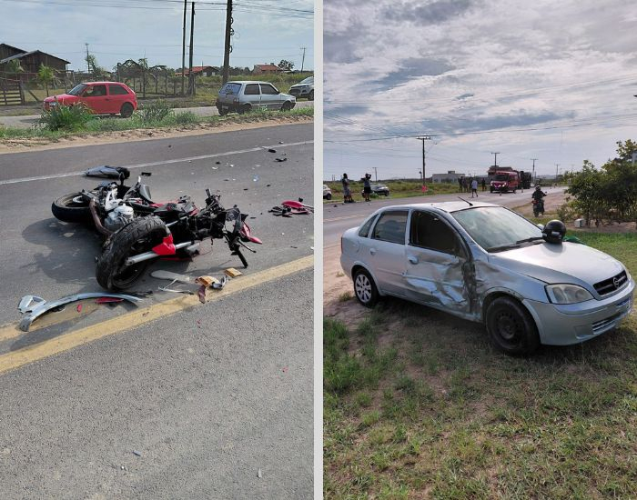 Acidente envolvendo um Corsa de Tubarão e uma Honda Twister ocorreu no bairro Laranjal