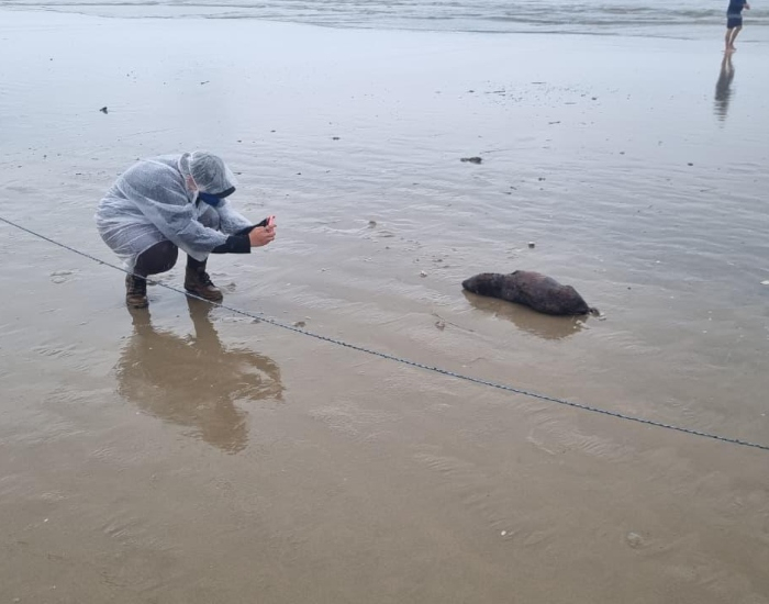 A coordenadora também salienta que o Museu é responsável pelo resgate de animais encontrados vivos, garantindo o encaminhamento para atendimento veterinário na base da Udesc, em Laguna. Já os animais coletados mortos (código 2) são transportados para a mesma base, onde são realizadas necropsias para avaliar causas de óbito e possíveis impactos ambientais.