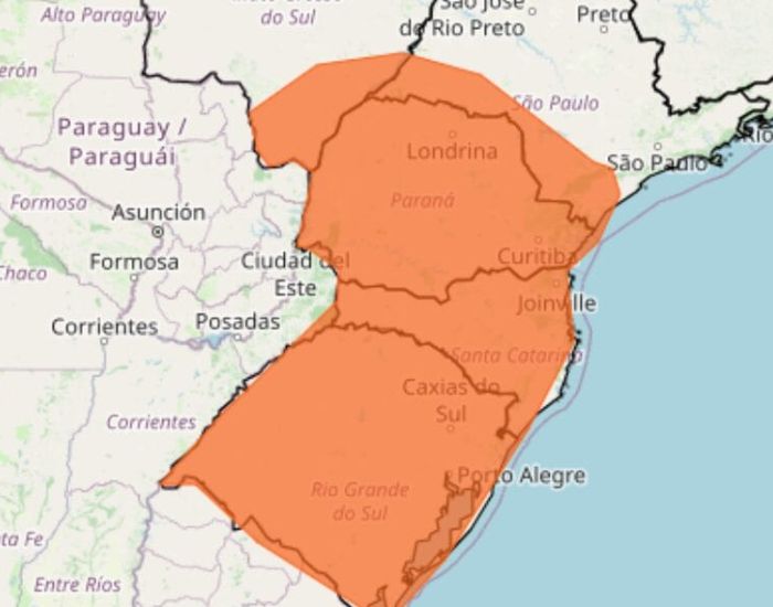 Em Santa Catarina, todas as regiões estão em alerta. Apenas alguns trechos do Litoral catarinense ficaram fora do aviso, como Florianópolis, São Francisco do Sul, Itapoá, Garopaba, Imbituba e Laguna.