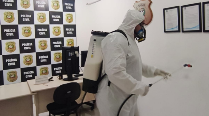 Equipe da Secretaria de Saúde realizou a aplicação da Borrifação Residual Intradomiciliar nos prédios do Detran e da Polícia Civil
