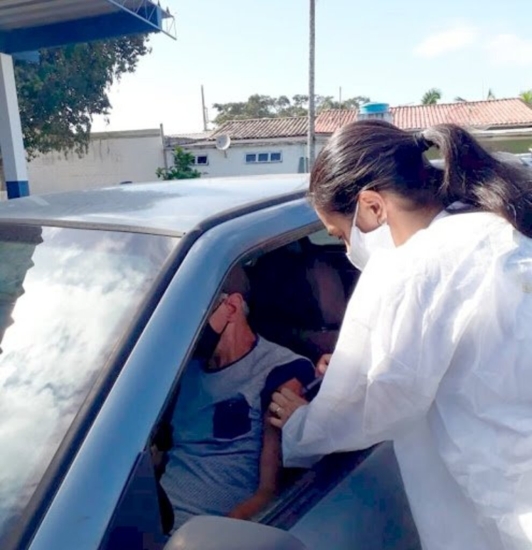 A imunização ocorre em sistema drive-thru, na rodoviária municipal