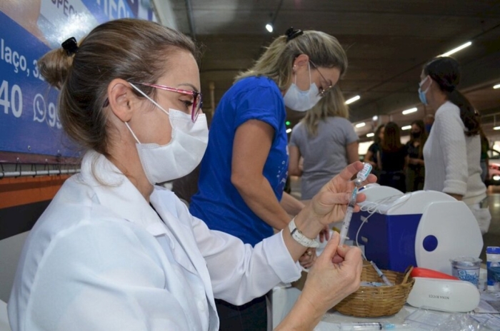 Idosos de 67 anos ou mais receberão a segunda dose. Ação ocorre no estacionamento do Farol Shopping