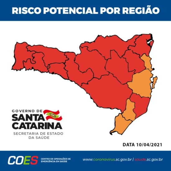 Covid-19: quatro regiões de SC baixam para nível grave; Amurel continua no gravíssimo