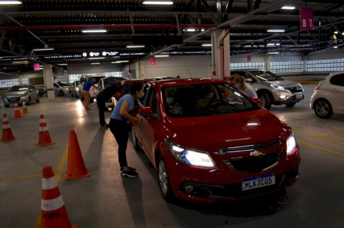 A ação ocorre no sistema drive-thru no estacionamento do Farol Shopping