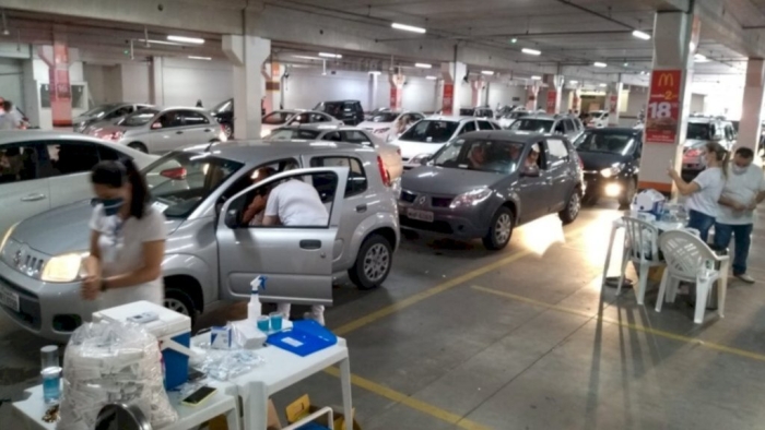 A expectativa é vacina cerca de 2,5 mil pessoas em sistema drive-thru no estacionamento do Farol Shopping