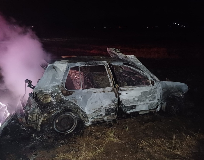 Por volta das 21h10 o veículo VW Golf foi encontrado no meio de uma plantação de arroz tomado pelas chamas. Foi feito o combate direto e rescaldo.
