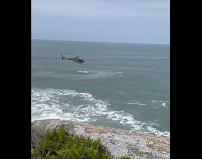 Logo após, ambos foram retirados do mar com o equipamento conhecido por “sling”, oportunidade em que a vítima foi avaliada e liberada na faixa de areia.