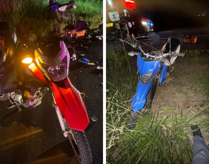 Ao chegarem ao local do acidente, os bombeiros encontraram o condutor de uma das motocicletas, um jovem de 21 anos com veículo emplacado em Sangão, deitado sobre a pista. De acordo com o relatório da guarnição, o rapaz apresentava um quadro de agitação e confusão mental, além de diversas escoriações pelo corpo. Seguindo os protocolos de atendimento pré-hospitalar, ele foi imobilizado em uma maca rígida e levado ao Hospital de Jaguaruna para avaliação médica.