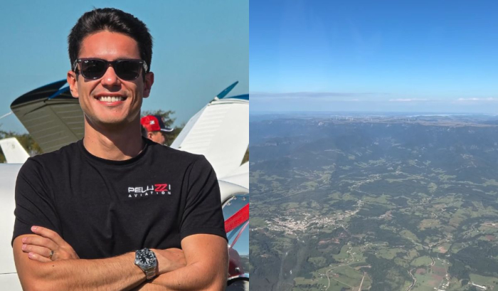 Foto: Redes sociais/Reprodução O piloto Renan Saes, uma das quatro vítimas fatais da queda de um avião de pequeno porte em Capão da Canoa (RS) nesta sexta-feira (3), registrou imagens de dentro da cabine horas antes do acidente.