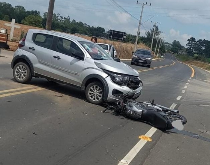 Um jovem de 23 anos sofreu graves ferimentos em um acidente de trânsito ocorrido nesta segunda-feira, dia 3, no bairro Esperança, em Içara. Ele conduzia uma motocicleta que foi atingida por um Fiat Mobi.
