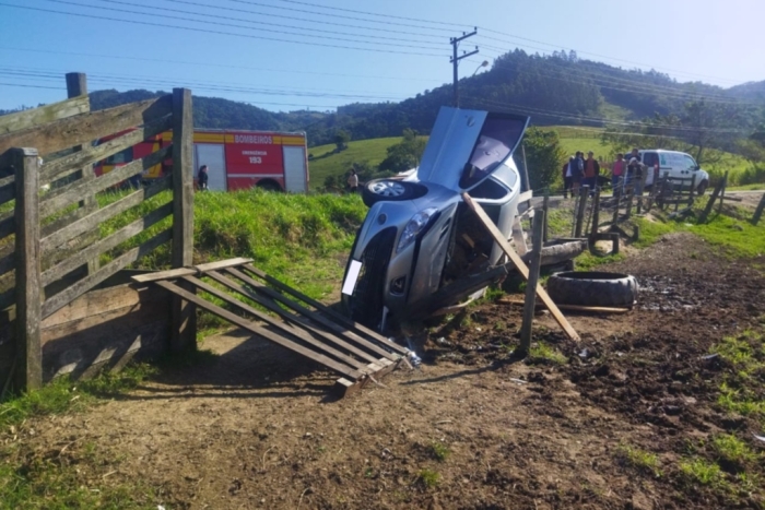 Após tombar o veículo, a vítima foi encaminhada ao hospital