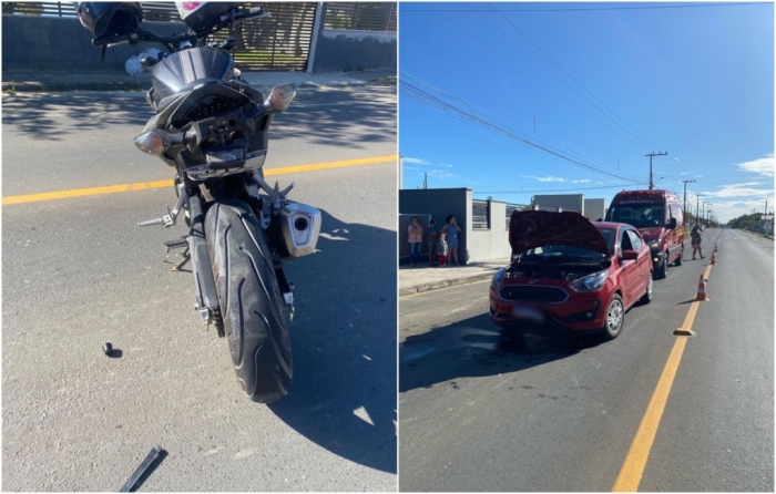 A caroneira da moto foi encaminhada ao hospital após atendimento dos Bombeiros Voluntários
