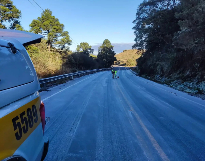 Na região da Serrinha, no Km 297 da SC-114, em São Joaquim, e na Serra do Panelão (SC-110), em Urubici, também foram registrados congelamento na pista.