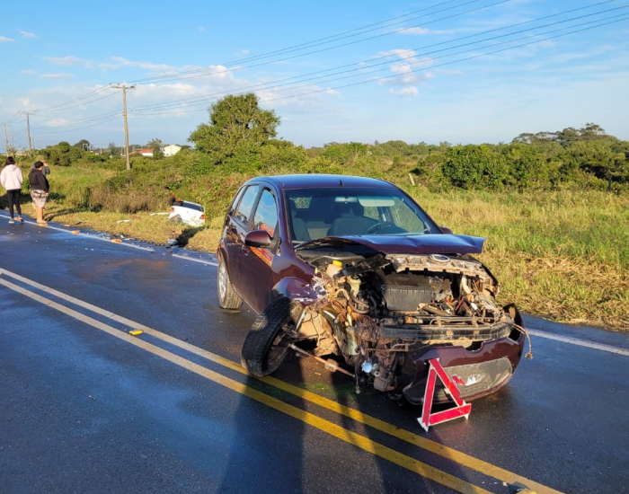 BVJ/Divulgação/Folha Regional Uma colisão entre dois automóveis deixou uma adolescente de 15 anos ferida nesta quarta-feira, dia 4, na Rodovia Heryberto Barzan, na localidade do Farol de Santa Marta, em Laguna.