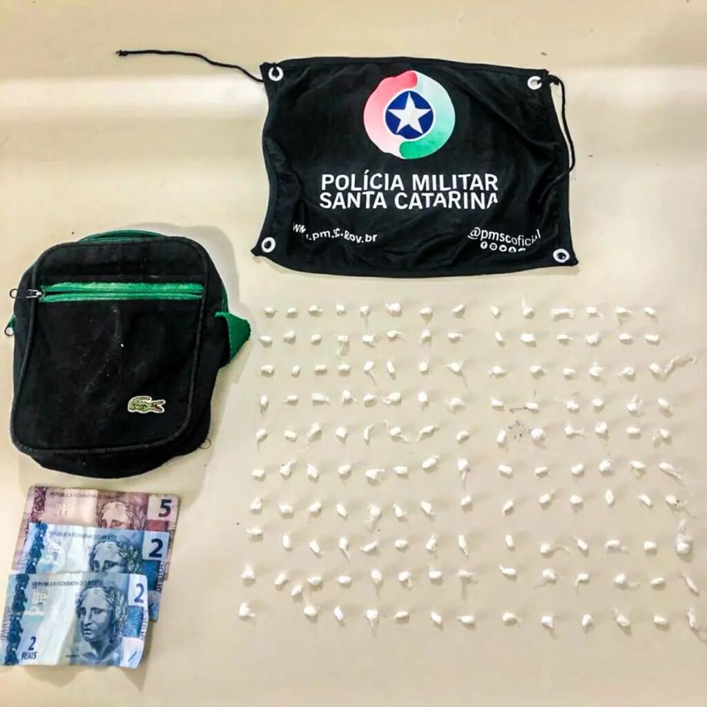 Um adolescente de 16 anos foi apreendido por tráfico de drogas neste sábado, dia 3, em Tubarão. O fato ocorreu quando policiais do Pelotão de Patrulhamento Tático (PPT) do 5º Batalhão de Polícia Militar (BPM) receberam informações de que um adolescente, já envolvido com o crime de tráfico, estaria guardando as drogas em um terreno, no bairro Morrotes, e efetuando o comércio de entorpecentes no local.