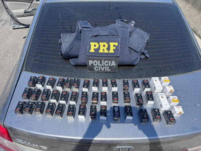 Os produtos estavam escondidos para tentar enganar a fiscalização. A maior parte do carregamento estava inserida dentro da caixa de uma garrafa térmica, lacrada com fitas adesivas. Outras unidades foram localizadas dentro de embalagens de produtos diversos, também lacradas com fita adesiva.