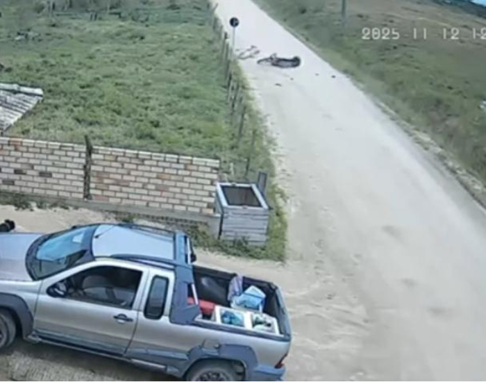 Apesar do impacto, o motociclista sofreu ferimentos leves e levantou em seguida. Imagens de câmeras de segurança registraram o momento e estão ganhando repercussão nas redes sociais.