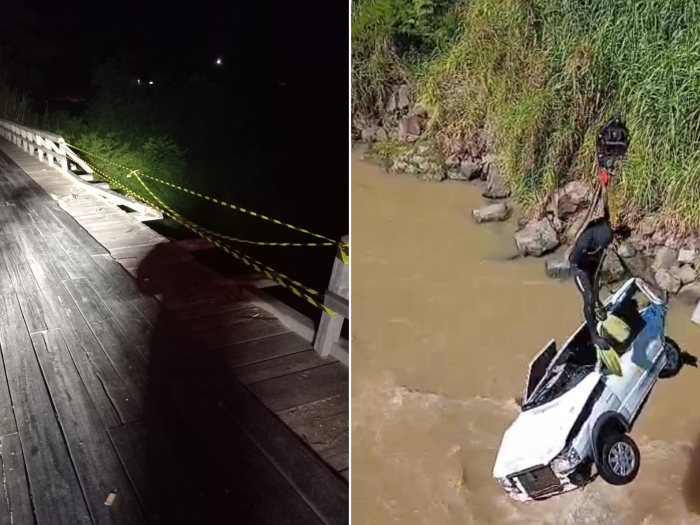 O acidente de trânsito ocorreu de madrugada, por volta de 0h10, na localidade de São Roque, em Gravatal. O carro saiu da pista em uma ponte e caiu no rio.
