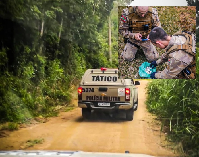 A guarnição da Polícia Militar apreende cerca de 900 pedras de crack e uma porção de maconha no bairro Bom Pastor, em Tubarão, nesta terça-feira, dia 18.