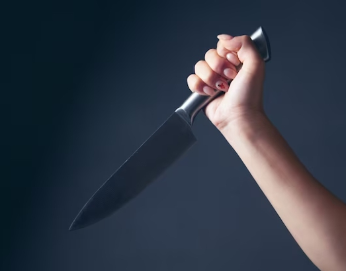 Em dado momento, ela pegou uma faca em mãos, porém largou após pedido da guarnição.