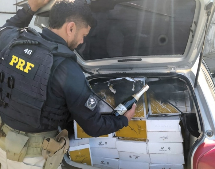 Policiais rodoviários federais apreenderam 474 garrafas de espumante trazidos ilegalmente da Argentina, depois de fugir de abordagem na BR-101, em São José, no sábado, dia 16.