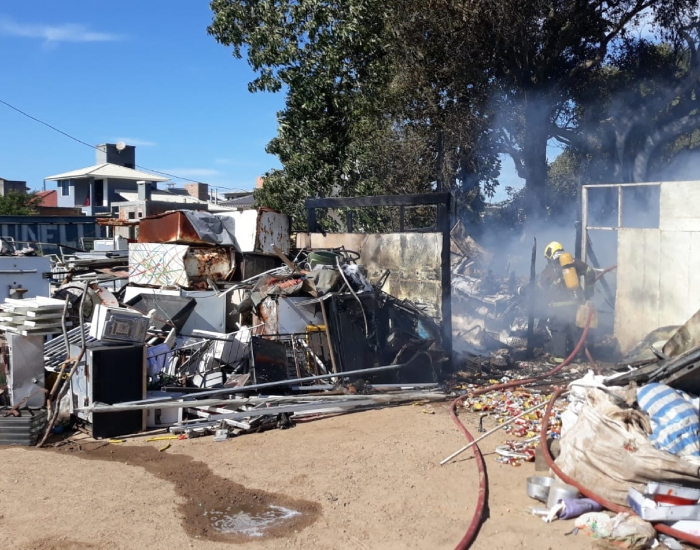 Uma empresa de reciclagem foi totalmente destruída por um incêndio neste sábado, dia 22, em Garopaba.