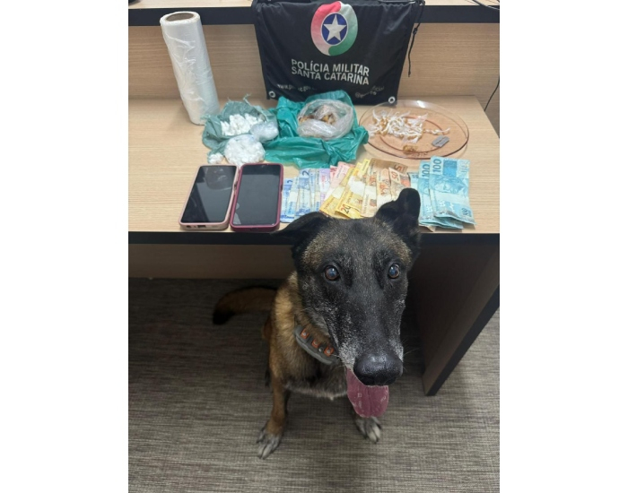 A ação foi realizada por equipes do Tático, Canil e Agência de Inteligência de Jaguaruna, após monitoramento que identificou a comercialização de entorpecentes na localidade de Morro Grande.