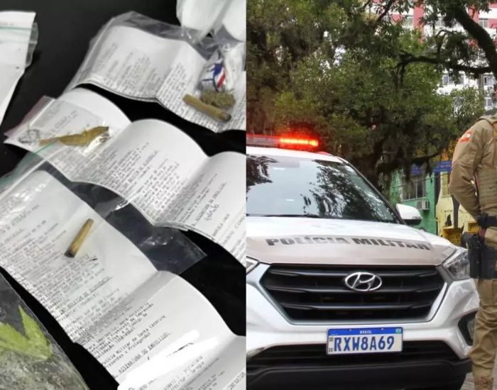 Segundo os policiais, o jovem estava sentado próximo ao calçadão quando foi visto acendendo o cigarro de maconha. A guarnição se aproximou e constatou o flagrante.