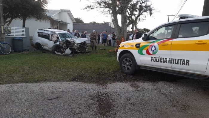 O motorista passou em alta velocidade pela viatura policial e em seguida provocou o acidente neste sábado. Ele apresentava sinais de embriaguez