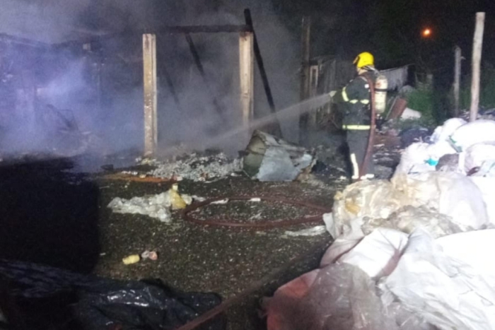 Uma empresa de reciclagem foi destruída por um incêndio, após um homem colocar fogo no local. O caso ocorreu no final da noite deste sábado, dia 11, por volta das 23h15, na SC-370, no bairro Rio Bonito.