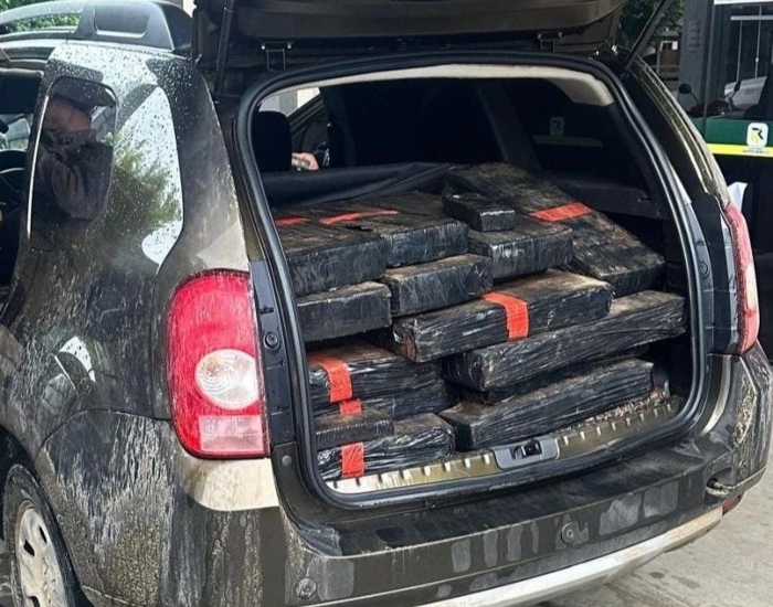 Um homem de 27 anos foi preso após ser flagrado com 348 quilos de maconha sendo transportados em um veículo Duster com placas de Criciúma.