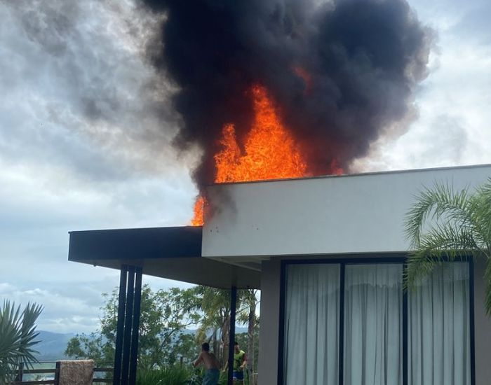 Fogo atingiu o telhado e a área externa da casa na tarde desta sexta