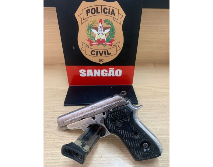 Em operação conjunta, policiais civis de Sangão e Jaguaruna apreenderam uma arma de fogo calibre 22, da marca Bersa.