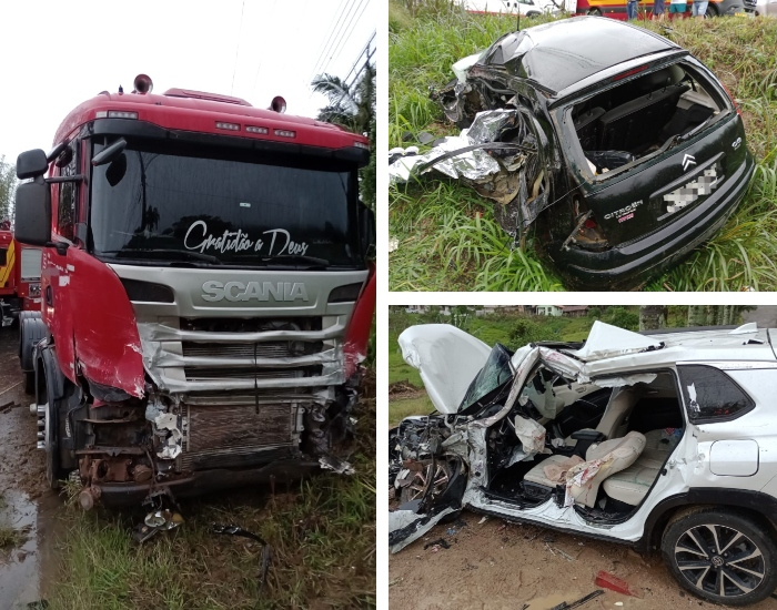 Com o impacto, o veículo Citroen/C3 perdeu o controle da direção e foi parar na marginal da rodovia. Já o caminhão acabou tendo um abalroamento longitudinal no sentido oposto da via, que atingiu o veículo Toyota Corola Cross, com placas de Braço do Norte, conduzido por um homem de 65 anos.