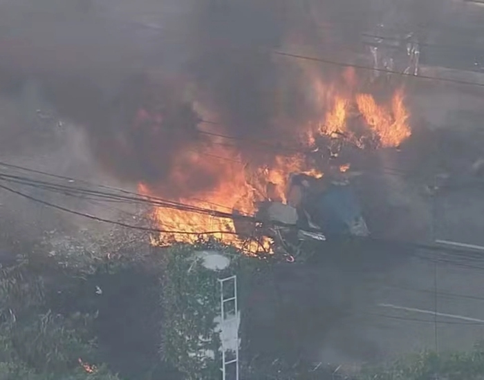 Um barulho de explosão foi ouvido no momento do acidente, e uma grande nuvem de fumaça preta pôde ser vista à distância.