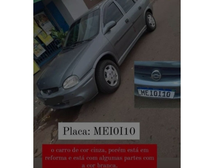O veículo de cor cinza estava em reforma e possui manchas brancas em algumas partes. Caso tenha informações sobre o furto, repasse à PM pelo 190.