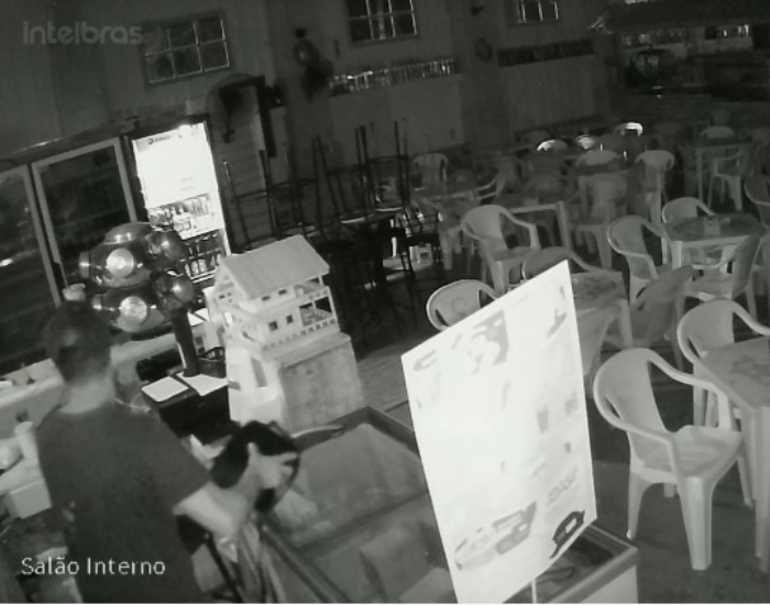 Pelas imagens das câmeras, foi possível ver o homem roubando dinheiro do caixa. Ele também pegou um celular usado no estabelecimento. A polícia foi acionada e chegou minutos depois e encontrou o bandido trancado no banheiro com o dinheiro e os objetos furtados.