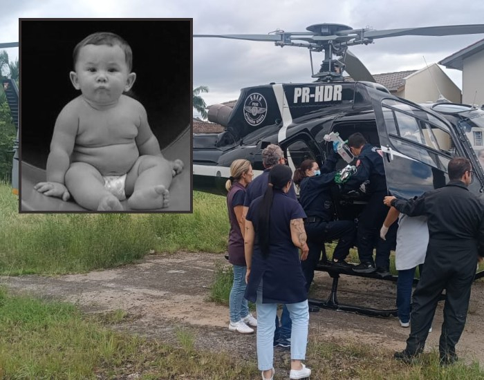 A criança foi socorrida em estado grave e transferida de helicóptero pela equipe do serviço aeromédico (Saer) ao Hospital São José, em Criciúma, com traumatismo cranioencefálico.