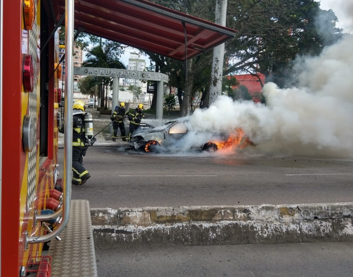 Um veículo ficou em chamas na tarde deste domingo, dia 2, na Avenida Centenário, no Centro de Criciúma.