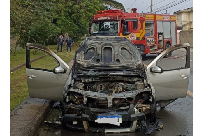 O carro foi tomado pelas chamas na manhã desta segunda-feira, na Avenida Getúlio Vargas