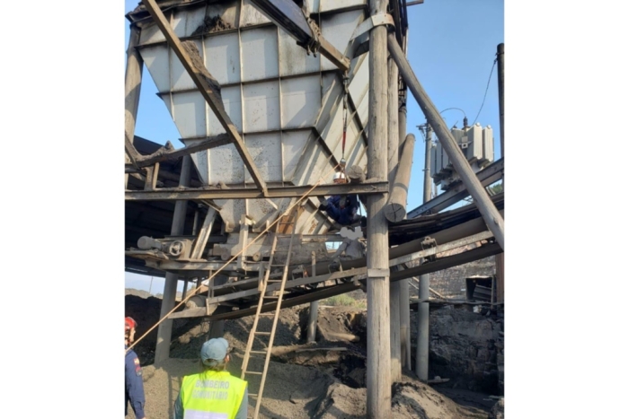 O Corpo de Bombeiros foi acionado e ao chegar no local encontrou a vítima consciente, sentada fora do silo em uma correia de transporte de carvão, a aproximadamente quatro metros de altura do chão. Segundo os socorristas, a vítima apresentava dor e deformidade no ombro direito, e dor no tornozelo esquerdo.