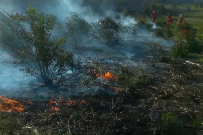 O vento forte espalhou a fumaça dificultando a extinção das chamas