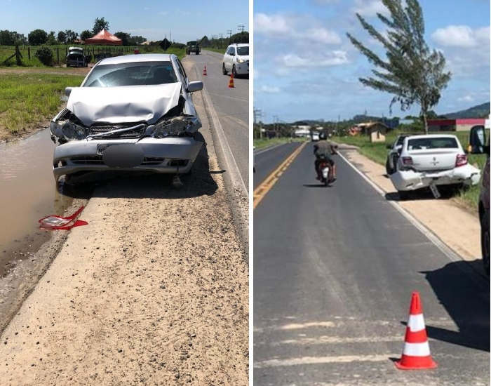 Uma colisão traseira foi registrada entre dois carros na localidade de Morro Bonito, em Jaguaruna, nesta quinta-feira, dia 7. Os Bombeiros Voluntários e a Polícia Militar Rodoviária Estadual foram acionados no local.
