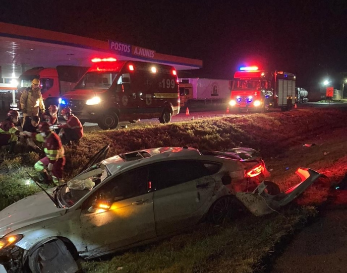 O fato aconteceu na BR-101, na Costa da Lagoa, em Jaguaruna. Ao chegar no local, a guarnição constatou que um casal ocupava o veículo Ford/Fusion, quando o motorista perdeu o controle da direção, saiu da pista e capotou em seguida.