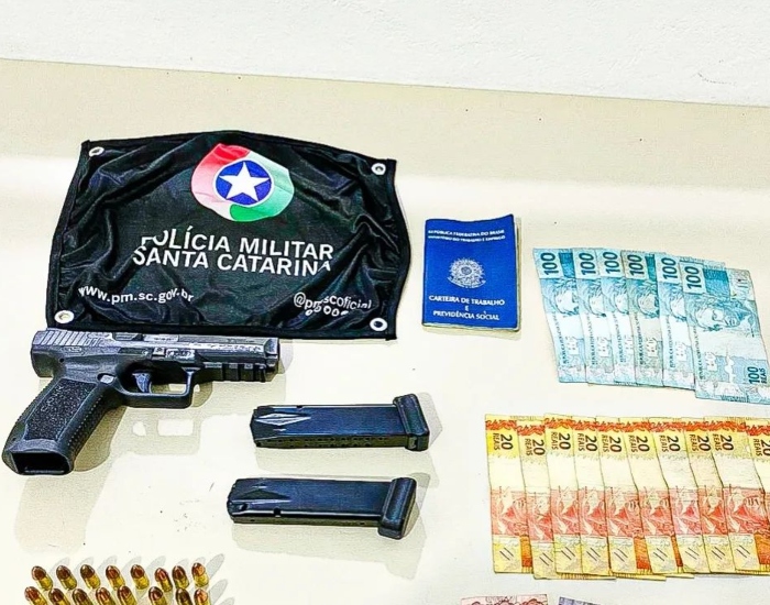 Dois deles foram abordados. No veículo havia uma pistola (calibre 9mm) com 18 munições.