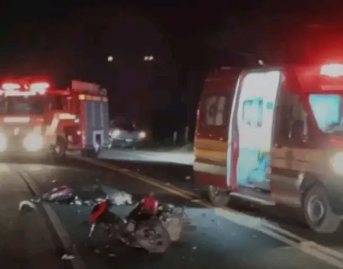 CBMSC/Divulgação/Folha Regional Um grave acidente de trânsito deixou um motociclista de 41 anos morto na noite dessa segunda-feira, dia 14, em Bom Jardim da Serra. O fato aconteceu após uma colisão entre um caminhão Volkswagen 18.260 CRM, com placas de Braço do Norte, e uma motoneta Honda Elite 125, com placas de Parambú (CE), no Km 393,700 da rodovia SC-390.