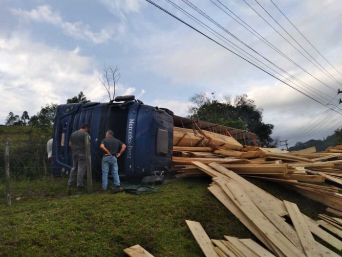 Carga de madeira ficou espalhada na rodovia