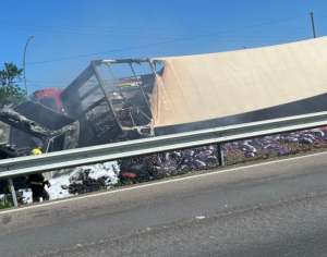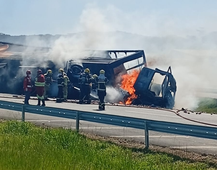 Em seguida, o veículo pegou fogo causando a interdição das pistas nos dois sentidos da rodovia.