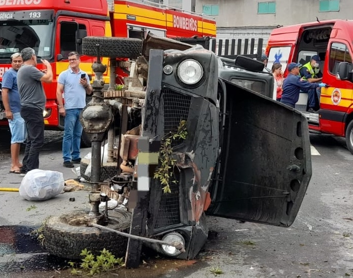 Trata-se de um capotamento, de uma caminhonete Toyota Bandeirante.