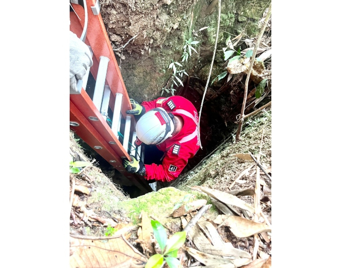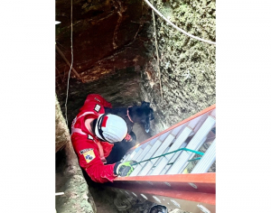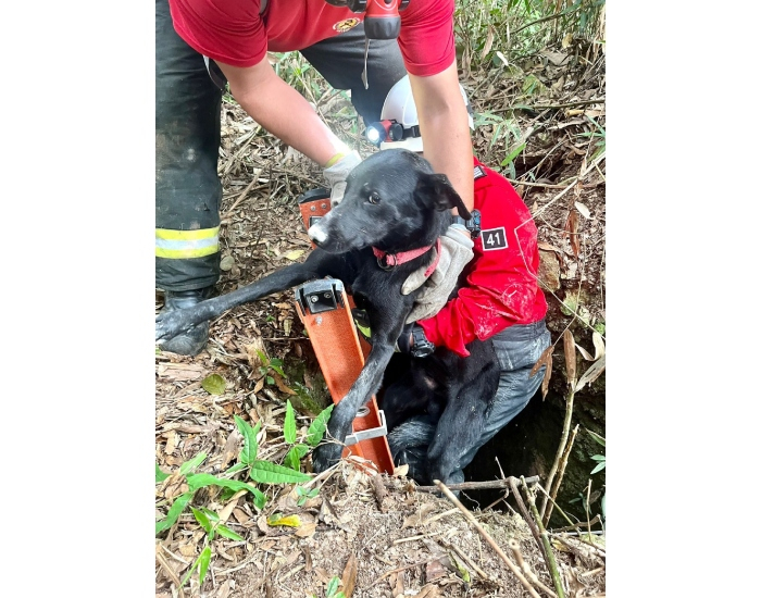 Bombeiros Voluntários/Divulgação/Folha Regional Um cão que estava desaparecido por dias e foi encontrado dentro de um buraco de 4 metros de profundidade, no município de Treze de Maio, foi resgatado nesta terça-feira, dia 2.
